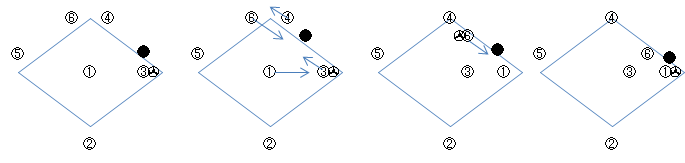 1塁手のSさんは本塁突入を見て、バックホーム送球を選択。